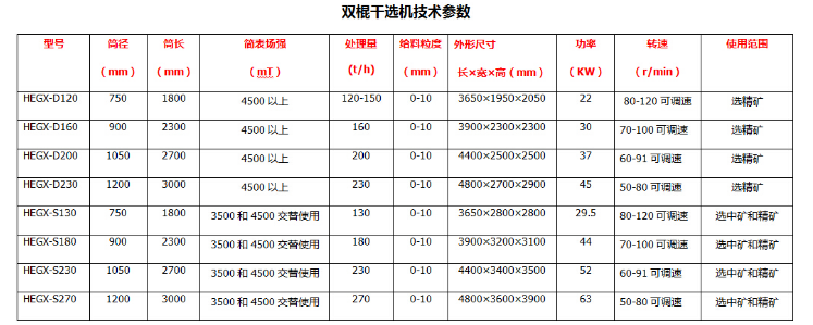 HEGX-S系列相對(duì)于HEGX-D系列來(lái)說(shuō),精礦品位更高,比原有干選機(jī)提高品位5-10個(gè),跑尾更少,可以控制在0.2-0.4,單臺(tái)處理量大,相對(duì)更穩(wěn)定。